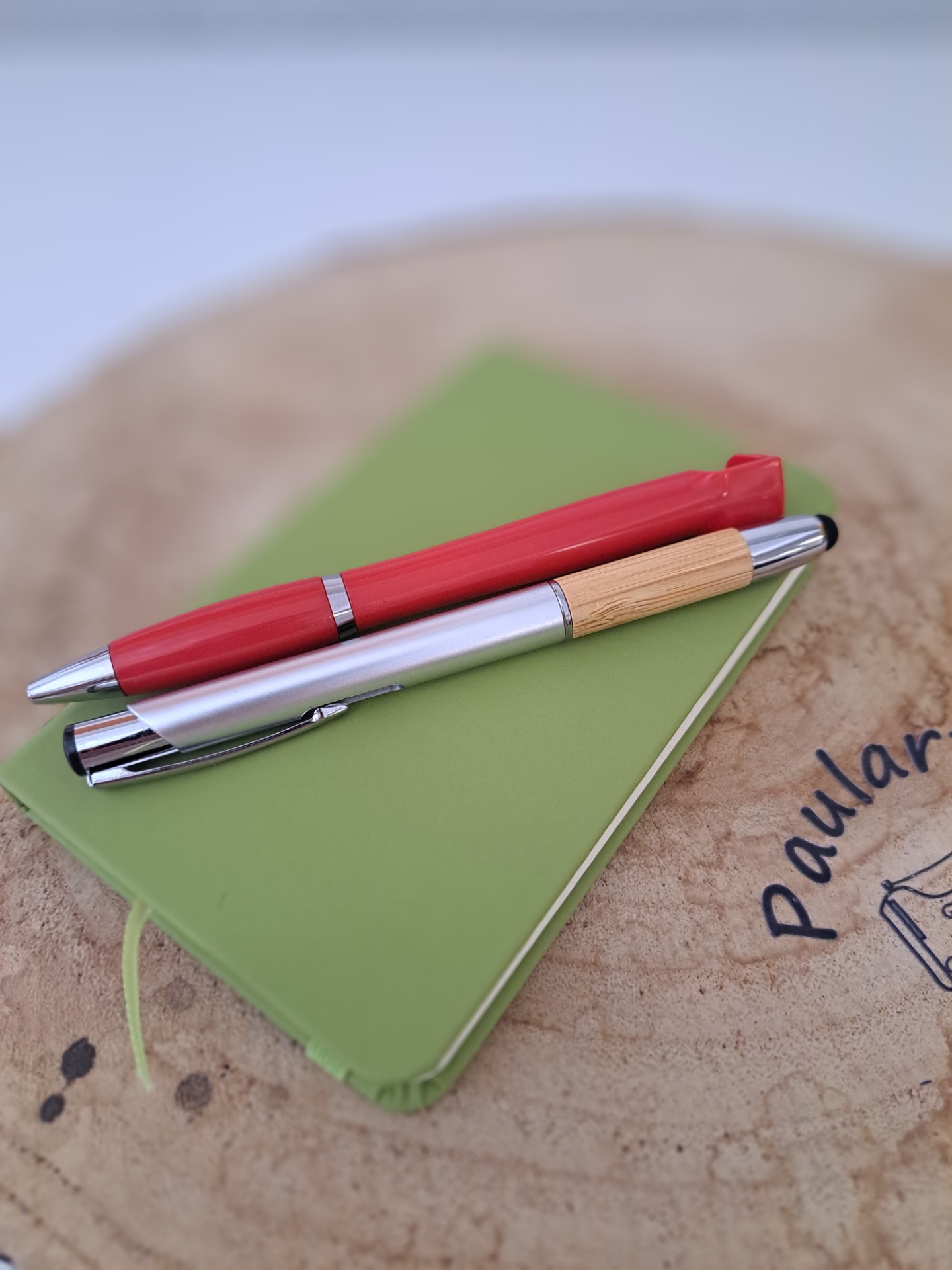 Conjunto caderno pautado e caneta