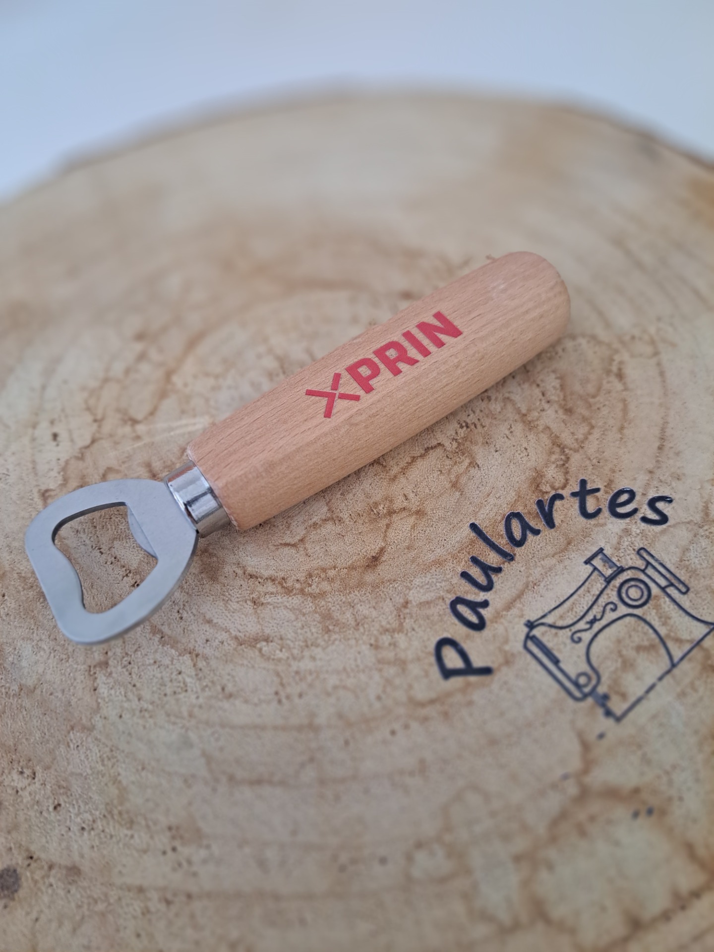 Abre garrafas com cabo em madeira para personalizar